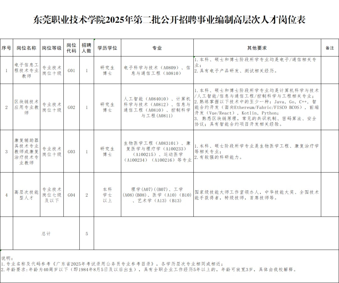 1.《东莞职业技术学院2025年第二批公开招聘事业编制高层次人才岗位表》